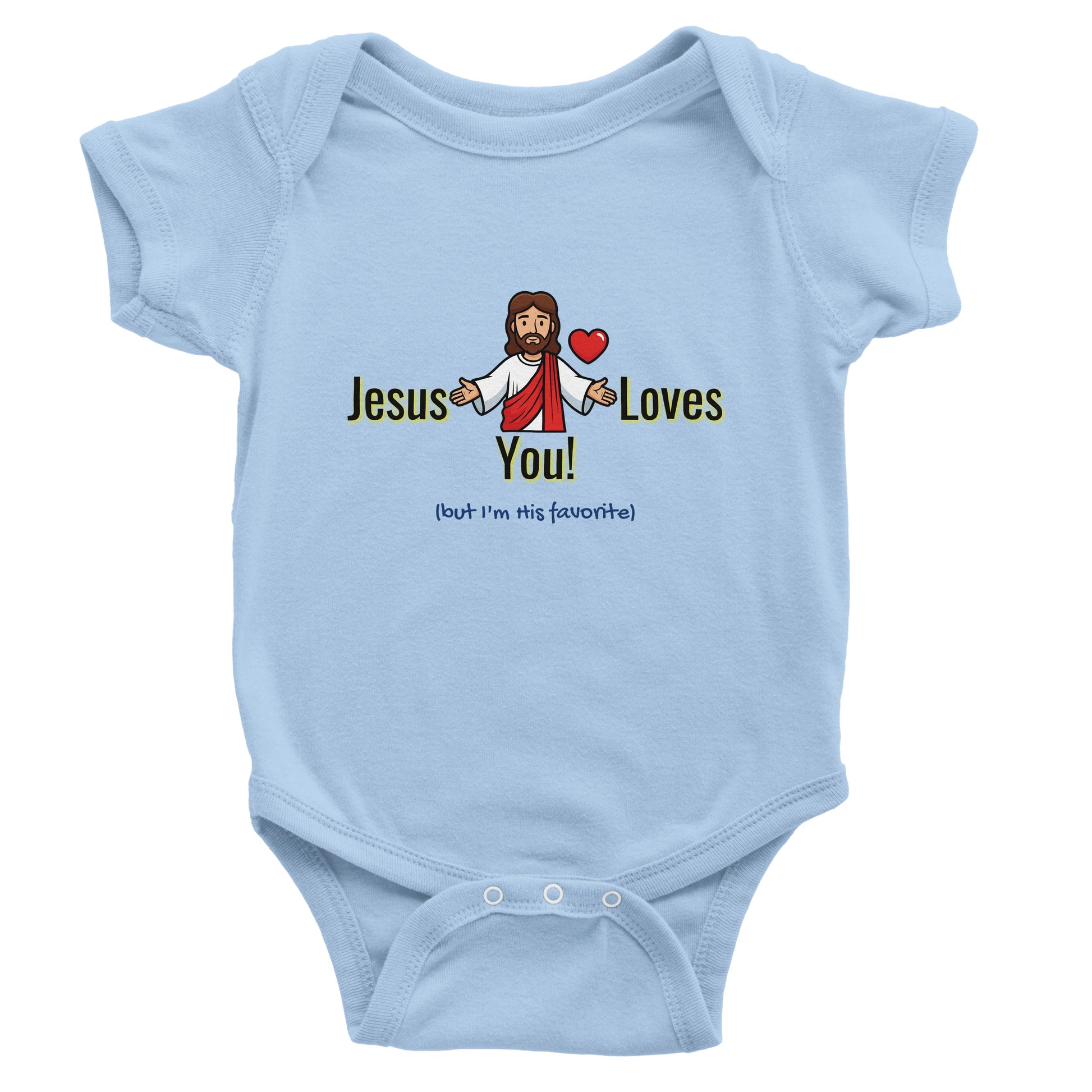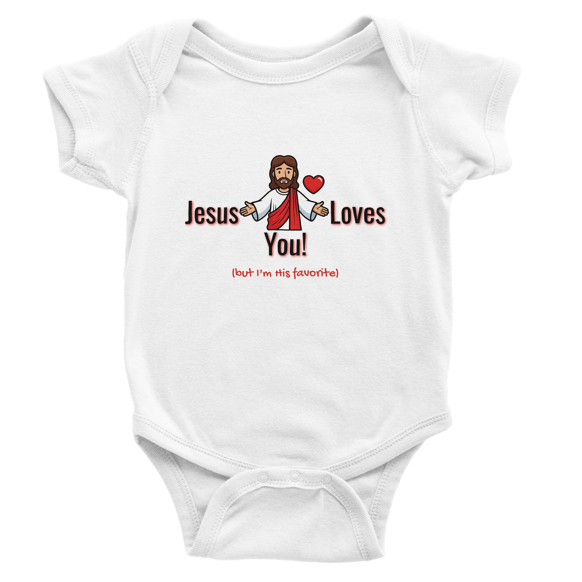 Jesus Loves You But I’m His Favorite Classic Baby Short Sleeve Bodysuit - Funny Christian Humor Baby Outfit